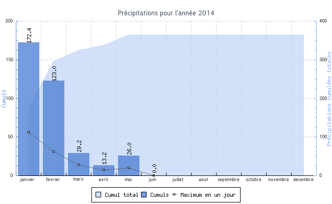 | fevrier | 0.6 °C | 4.7 °C | 17.5 °C | 14.3 °C | 9.2 °C | 5.2 km/h | 51.5 km/h | NO |